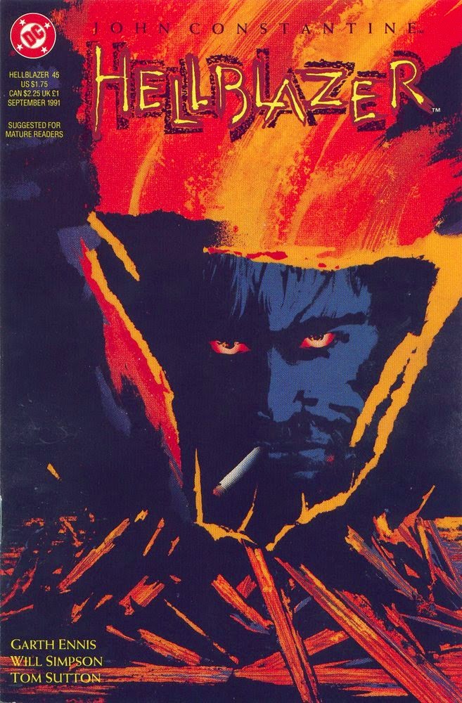 En este espacio hemos decidido hablar sobre Hellblazer, protagonizado por John Constantine, un personaje mal humorado, cínico, tramposo, en ocasiones vulgar, se le podrá ver siempre vistiendo su distintiva gabardina y fumando algún cigarro, uno de sus hábitos peligrosos, pero además de salud otros hábitos que le acarrean problemas es sobre su modo de actuar, pues John es una persona que no dudara en utilizar o engañar a familiares y amigos para obtener lo que quiere, siempre buscará el modo de hacer que quedes en deuda con él y escogerá el momento menos oportuno para cobrárselo, por esa razón no es nada extraño que sus amigos disminuyan mientras sus enemigos aumentan, pero si eso hace con las personas cercanas a él, imagínate lo que le hace a sus enemigos, nunca se deja intimidar, nunca lo veras agachar la mirada, aun cuando todo parece perdido su maldita suerte parece no dejarlo, tal parece que nada lo asusta ni siquiera la muerte, y aun cuando muera si de pura casualidad llega al cielo, Constantine sabe que se encargarán de mandarlo al infierno, pero ni eso parece importarle, pues ten por seguro que John es capaz de pararse frente a cualquier demonio, mirarlo a los ojos, patearle las bolas y romperle la cara, por eso además de cuidarse de los vivos, debe ser cauteloso con los muertos y precavido con los demonios, quienes se pelean por un pedazo de su alma condenada, y John puede establecer contacto con entidades y otros seres sobrenaturales por sus conocimientos en brujería.